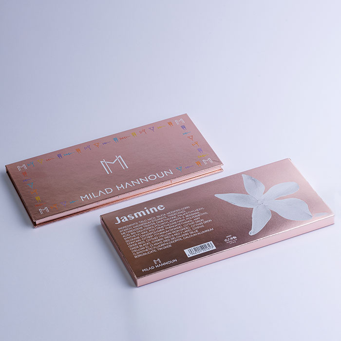 Inspired by the legendary Damascus steel renowned for its exquisite craftsmanship and timeless allure. The Jasmine Eyeshadow Palette by Milad Hannoun is a masterpiece of artistry. Each shade, from the velvety mattes to the dazzling glitters. The palette dances between warm, earthy tones and opulent metallic finishes, creating a symphony of color that blends seamlessly for both bold and subtle looks.